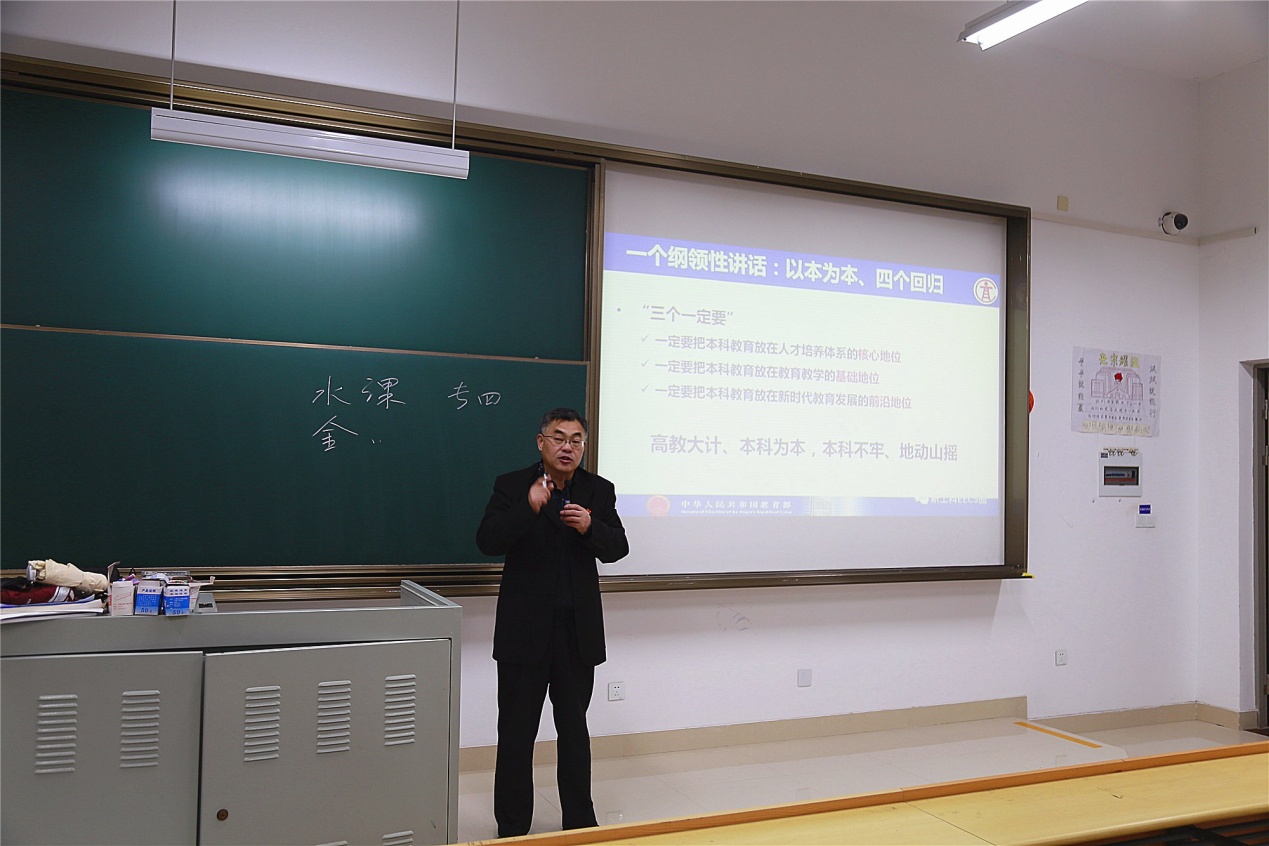 三位院领导解读“九个坚持”,重点讲解“四个回归”。回归常识,就是引导学生要刻苦读书学习,求真学问、练真本领。回归本分,就是教师要潜心教书育人。回归初心,即高校要倾心培养建设者和接班人。回归梦想,即高等教育要倾力实现教育报国、教育强国梦。同时传达教育部部长陈宝生讲话精神:要对大学生合理“增负”,提升大学生的学业挑战度。要把从严管理的规矩立起来,把课堂教学建设强起来,把课堂教学质量提起来。要淘汰“水课”、打造“金课”;要严格执行师德师风一票否决制。要严格考试纪律、严把毕业出口关,坚决取消“清考”制度。”