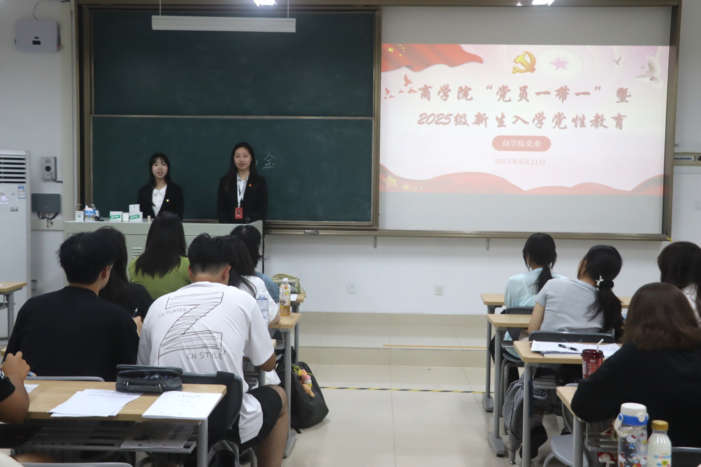 学生党员和党建服务中心学生组成17对“宣讲小组”,分别对接2025级新生22个行政班级,利用晚自习时间开展进班宣讲,主要内容分为两个部分:党史知识和入党条件、商学院党建工作风采。