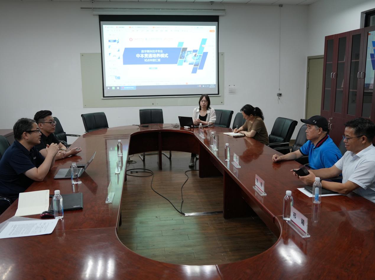 会上,双方从中本贯通的必要性、可行性、一体化设计以及贯通保障等四个维度详细讨论了数字媒体技术专业中本贯通培养模式试点申报的主要内容,就如何优化汇报内容、凸显项目特色进行深入的交流。