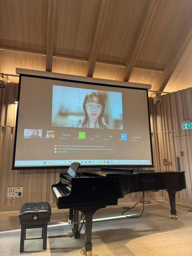 伦敦时间14:00-16:00(北京时间21:00),本校学生吴旺阳在新闻传播学院时尚传播系教师王彤的带领指导下,有幸在皇家音乐学院共同进行20分钟全英文分享。随后,本校教师王彤参与圆桌会议,与牛津大学电子研究教授David De Roure、美国东北大学传媒学院教授Anthony Paul De Ritis、北方皇家音乐学院作曲主席Emily Howard等杰出专家同台交流。体现了我校师生的国际视野、协同创新。