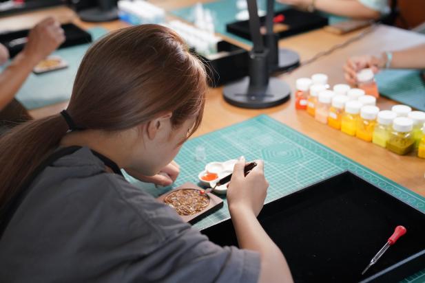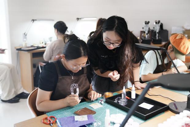 课程创新尝试“双轨制教学体系”:一方面由珠宝学院资深教师系统梳理景泰蓝600年工艺脉络,解析掐丝、点蓝、烧蓝等核心技艺的文化基因;另一方面组织学院专业高年级学生担任助教,将课堂理论转化为可操作的创作指导。这种“教师授业+朋辈辅导”的模式,使抽象技艺具象化为可触摸的创作体验。