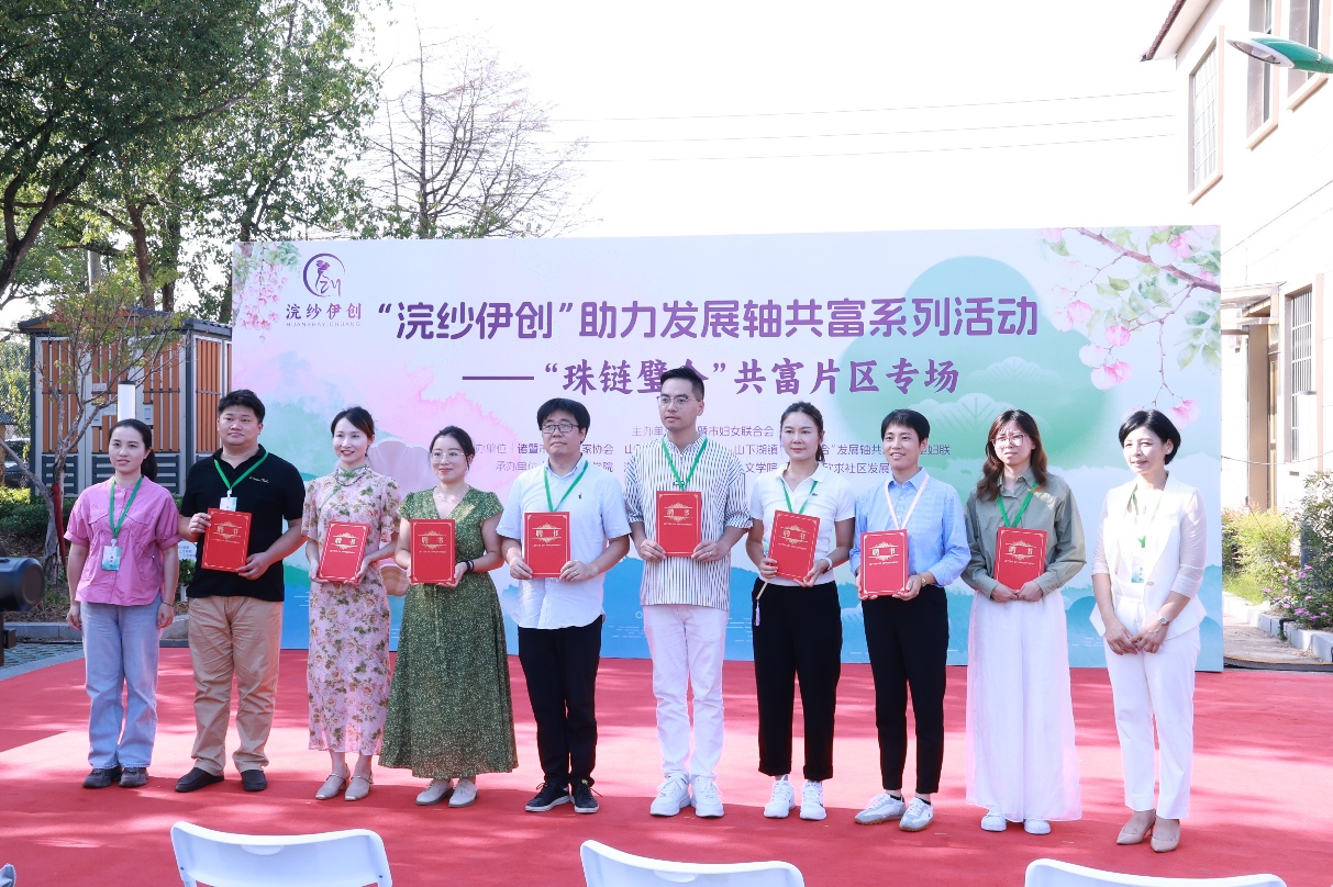 1012日下午,由诸暨市妇女联合会主办,上海建桥学院、浙江农林大学暨阳学院、诸暨市欣求社区发展中心共同承办的“浣纱伊创”助力发展轴共富系列活动——“珠链璧合”共富片区专场在诸暨市山下湖镇新桔城村成功举办。我校直播经济产业学院师生团队全程深度参与,将专业教学与地方共富需求紧密衔接,为诸暨巾帼创业注入 “建桥力量”。