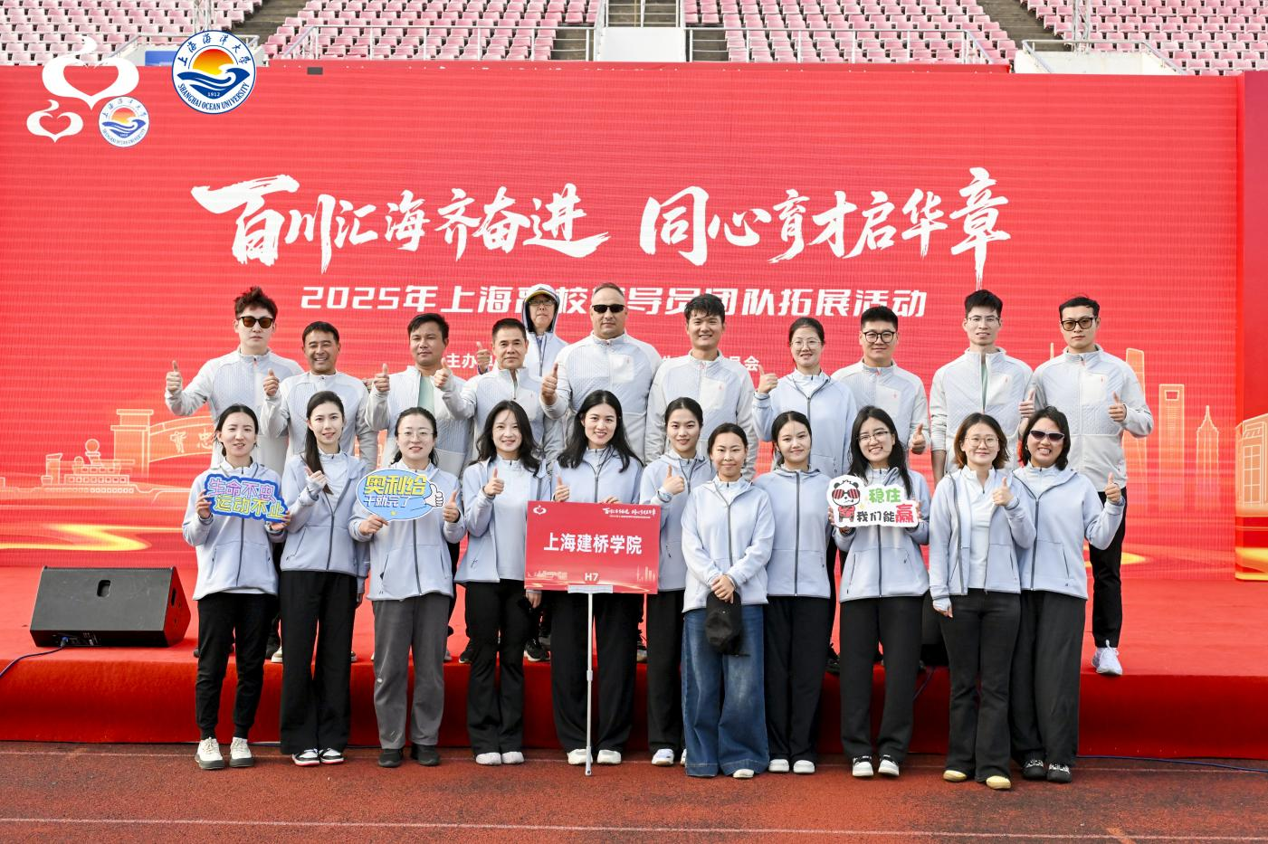 10月25日,2025年上海市高校辅导员团队拓展活动在上海海洋大学举行。上海市教卫工作党委副书记顾红亮,上海海洋大学党委副书记、副校长夏雅敏,上海市教委德育处,各高校分管学生工作的校领导出席开幕式。来自全市58所高校学生工作部门负责人和辅导员代表共计1100余人参加了本次活动。上海建桥学院辅导员组成的代表队顽强拼搏,不仅成功斩获“团体三等奖” ,更在竞争激烈的 “一鼓作气”单项赛中力压群雄,勇夺第一名。