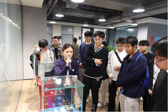 本次活动精心设计了一条贯穿产业链的参观学习路线。参与活动的师生首站抵达滴水云厅规划展示中心,系统了解了临港的宏观产业布局与集成电路集群的战略前景,从顶层设计上坚定了学子扎根临港的信心。随后,队伍深入司南半导体超级孵化器,在产业孵化总监许晓昕的带领下,实地探访了超净实验区、硬件仿真加速机房等核心区域,使学生对科研项目从概念验证到产业化的全流程有了直观且系统的掌握。最后,参访红与蓝微电子有限公司时,公共事务部专员蒋倩通过展示厅与功率器件样品区的生动讲解,清晰呈现了从芯片设计、封测到量产的完整产业链。