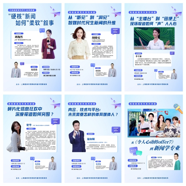 今年9月初至今,上海广播电视台融媒体中心记者刘逸然、奉贤区融媒体中心记者季千滟、SMG深度报道组首席编导楚华、五星体育互联网运营总监施如顺及“看东方”资深项目经理胡晓雯等业界讲师相继走进课堂提前“带教”,每一场讲座、每一次互动,都紧扣行业最前沿的实践痛点,让学生在校园里就能触摸到新闻行业的真实脉搏。当然,他们所带来的不仅仅是实操技巧,更是新闻人的职业初心与责任担当。