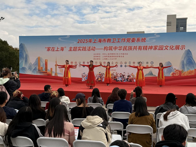 11月5日,2025年上海市教卫工作党委系统“家在上海”主题实践活动——构筑中华民族共有精神家园文化展示活动成功举办。本次活动由上海市教卫工作党委主办,上海市民族团结进步联合会提供支持,上海第二工业大学承办。上海建桥学院选派少数民族同学代表参加了此次文化盛会,并以一段精彩的独舞表演,展现了新时代少数民族大学生的风采,为构筑中华民族共有精神家园增添了亮丽的一笔。