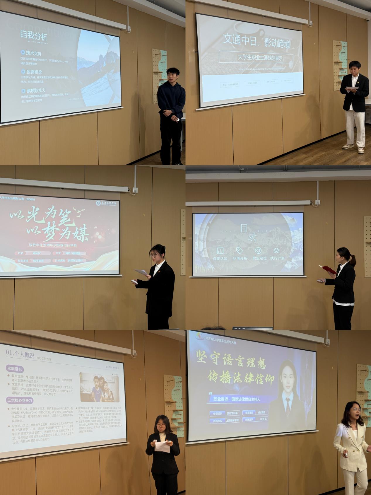 比赛过程中,选手们准备充分、逻辑严谨、表达自如,充分展现了学院学子积极向上的精神风貌。其中,李雯乐、李刘艺等同学凭借扎实的内容、鲜明的特色与稳健的表现脱颖而出,获得评委与现场观众的一致好评。选手们的精彩表现,不仅体现了对职业发展的深入思考,也展示了学院生涯教育建设的阶段性成果。