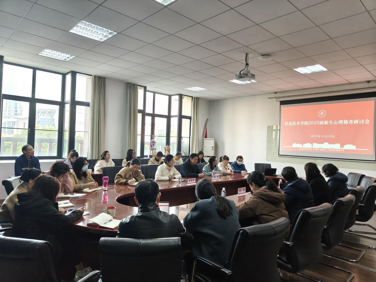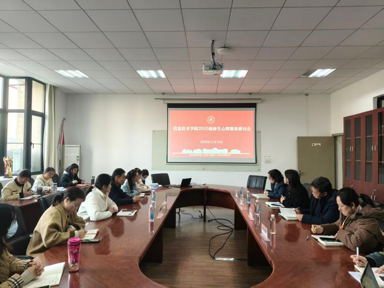 为全面精准掌握2025级新生心理状态,科学识别潜在心理风险,切实做好新生心理健康教育与服务工作,11月19日,信息技术学院在院205会议室召开2025级新生心理筛查研讨会。学生处副处长方梦瑶、心理中心副主任田彬应邀莅临指导,信息技术学院院长陈明、党委书记杜鹃、副院长矫桂娥、党委副书记徐娜,各系(室)主任及全体辅导员共同参会。会议由徐娜主持。