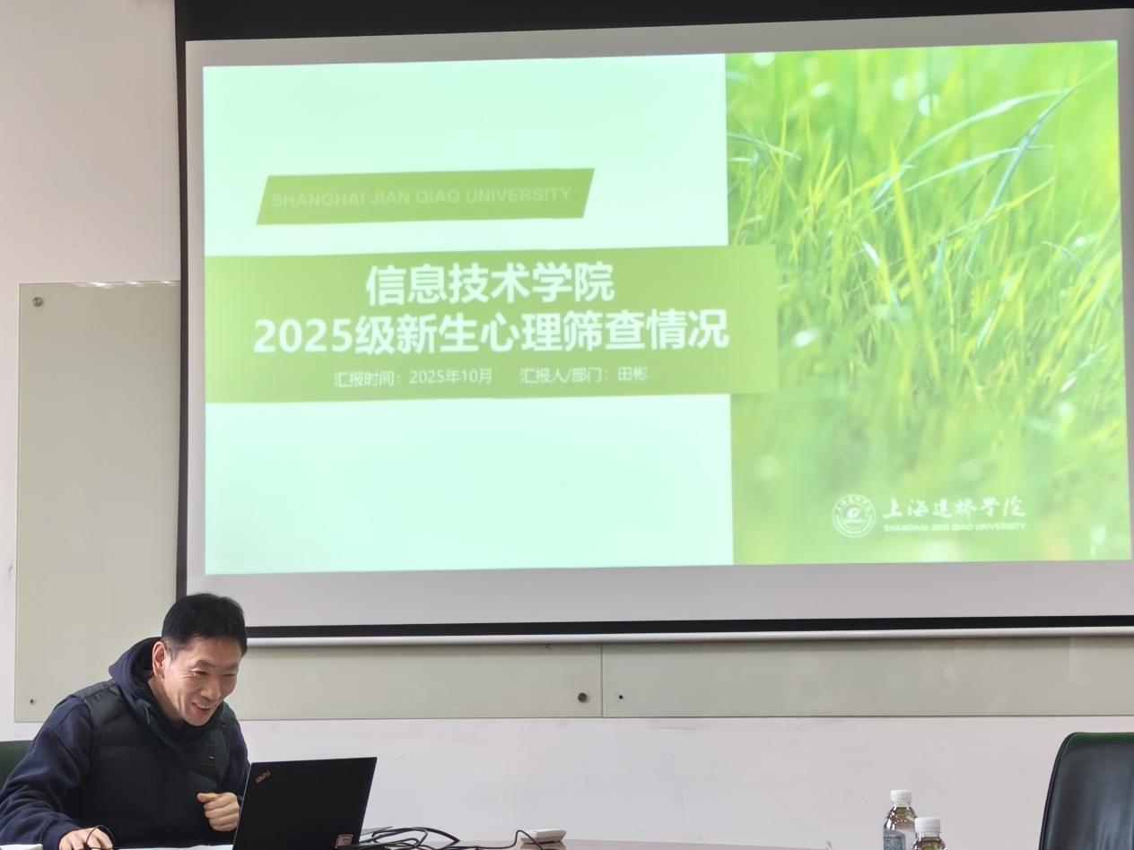 心理中心副主任田彬博士作《信息技术学院2025级新生心理筛查情况》专题报告。报告中,田彬博士结合“16PF人格因素测试”“大学生人格健康问卷(UPI)”两项核心筛查工具的监测数据,从整体分布、群体差异、突出问题等维度,详细解读了学院大一新生与专升本新生的心理筛查结果,系统反馈了学院本年度学生心理咨询情况与重点学生约谈进展,并针对筛查中发现的共性问题与个性案例,给出了兼具专业性与实操性的工作提示,为学院后续心理健康工作开展提供了科学依据与方法指导。