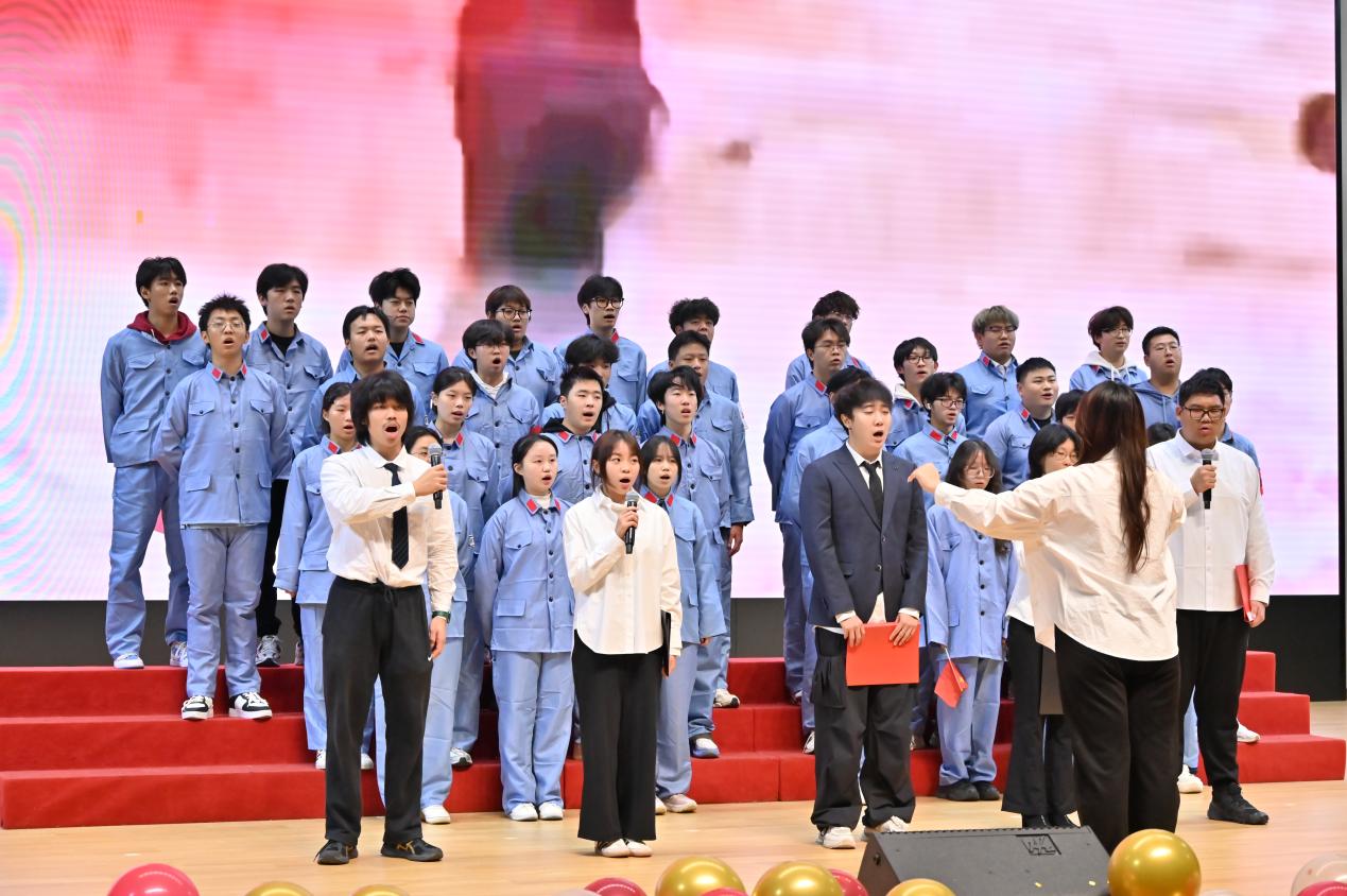 网工B25-1班与网工B25-4班带来的《少年中国说》瞬间点燃全场气氛。“少年自有少年狂,身似山河挺脊梁”,激昂的旋律搭配铿锵有力的演唱,将梁启超先生笔下的少年意气展现得淋漓尽致,歌声中满是青年接棒时代的底气与锋芒。