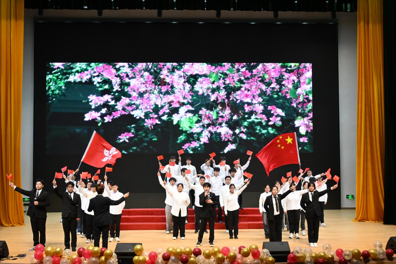 计科B25-1班与数媒B25-2班先后演绎的《紫荆花盛开》,用明快旋律勾勒出香江两岸的繁荣温情,诉说着对家国团圆的珍惜与美好明天的期盼。