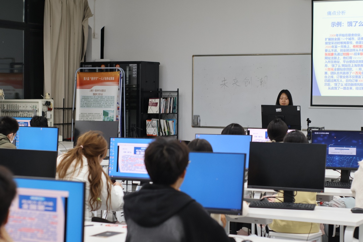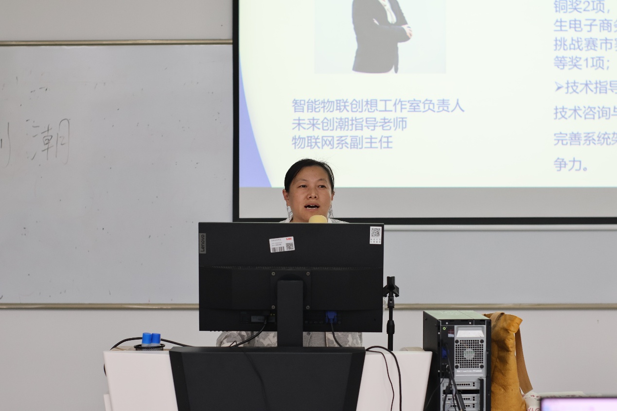 紧接着,未来创潮社指导老师范培英为社团进行一场全面且系统的讲解。她首先对未来创潮社的发展历程进行了回顾,从社团创立的初心,到一路走来所经历的重要节点和取得的阶段性成果,每一个细节都如数家珍。她提到,社团在成立初期就明确了以培养创新型创业人才为目标,致力于为同学们搭建一个实践与交流的平台,而经过这些年的不懈努力,社团已经逐渐成长为校内创业领域的一支重要力量。