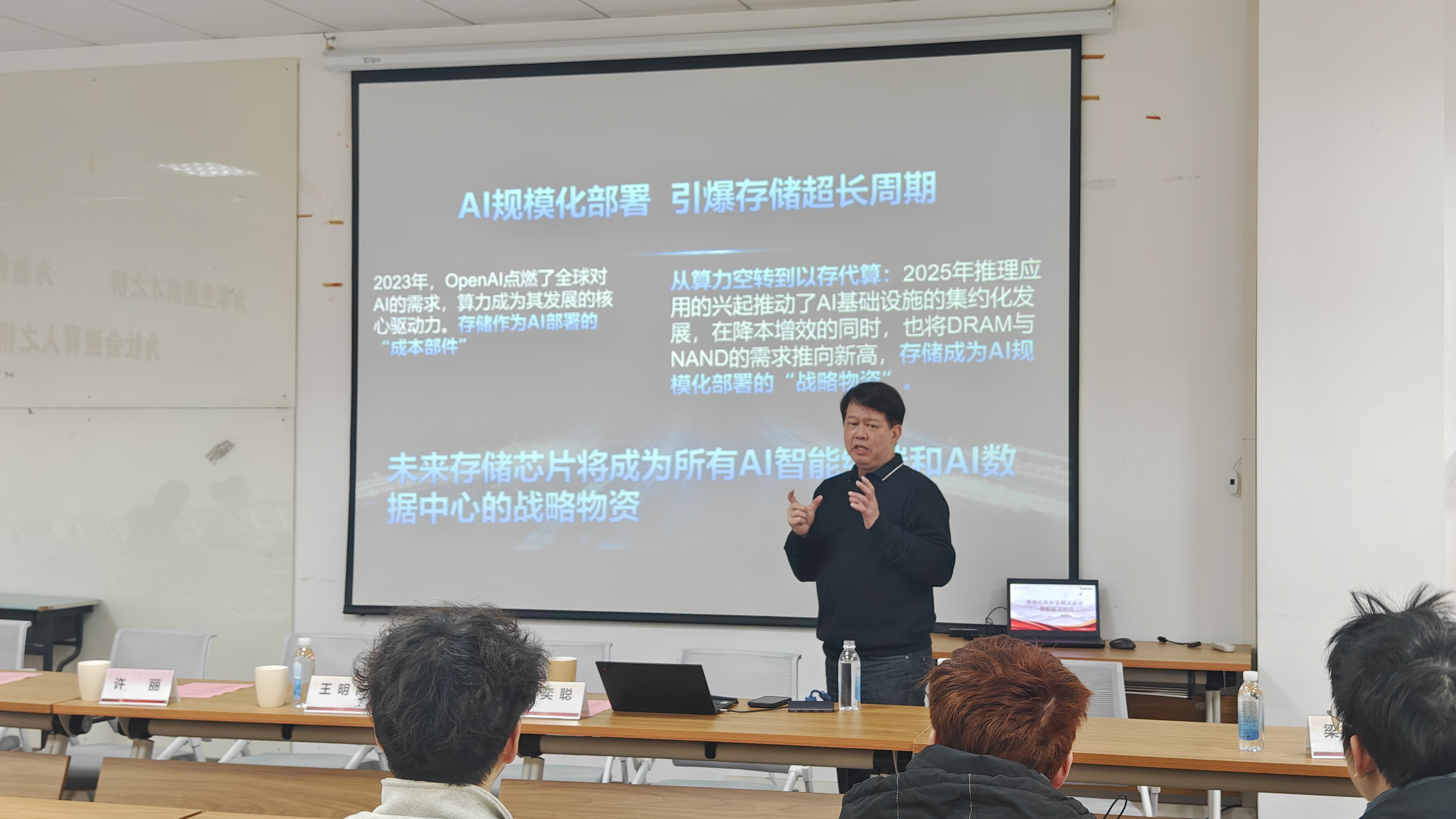 特邀主讲人、学院特聘产业教授李奕聪,凭借其跨越英特尔、通富微电等国内外头部企业三十余年的深厚履历,曾主导创建英特尔中国首个CPU封测工厂并主导先进工艺本土化落地。他以《“芯”时代,“才”未来》为题,从产业格局、技术演进与人才需求三个维度展开,为学生构建了连接前沿趋势与自身发展的认知坐标系。