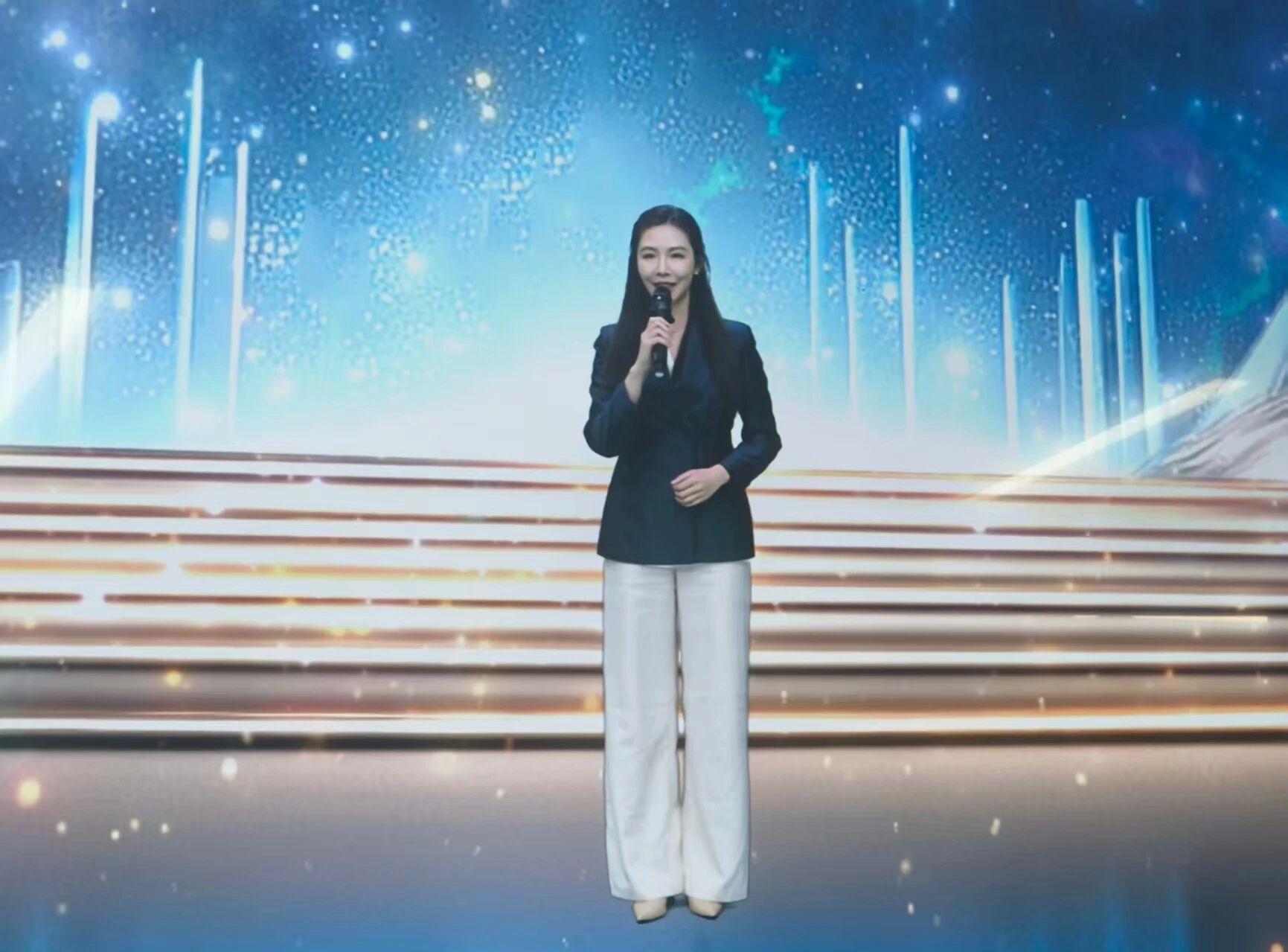 贾兵兵组作品以国家级非物质文化遗产——景泰蓝掐丝珐琅为艺术表达对象,为这项古老技艺“量身定制”了数字代言人和虚拟主播。形象设计借鉴景泰蓝工艺中的纹样设计和色彩体系,借由AIGC技术,通过虚拟主播、数字分身和真人出镜的方式,将静态的非遗之美转化为动态的叙事影像,在虚实交融中传递出文化传承的当代价值。