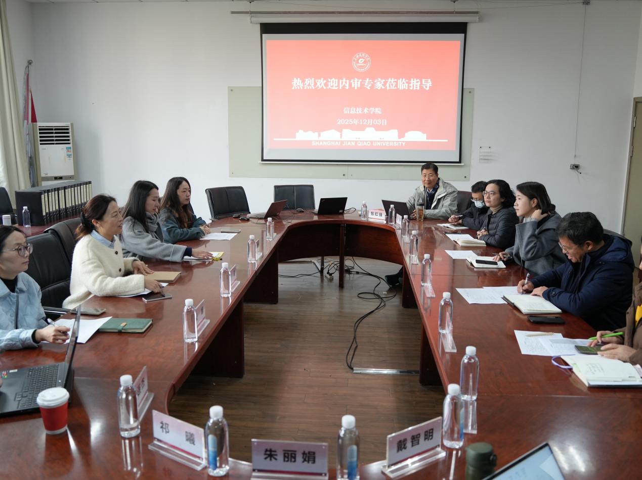 2025年12月03日,信息技术学院在205会议室迎接由教务处副处长朱霞任内审组长的2025年内审检查。信息技术学院党政领导与各系、室负责人参加。