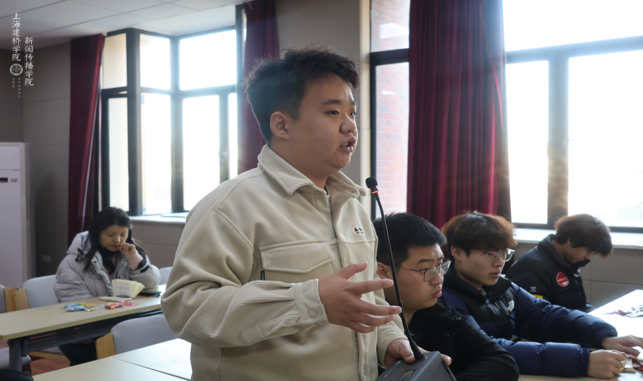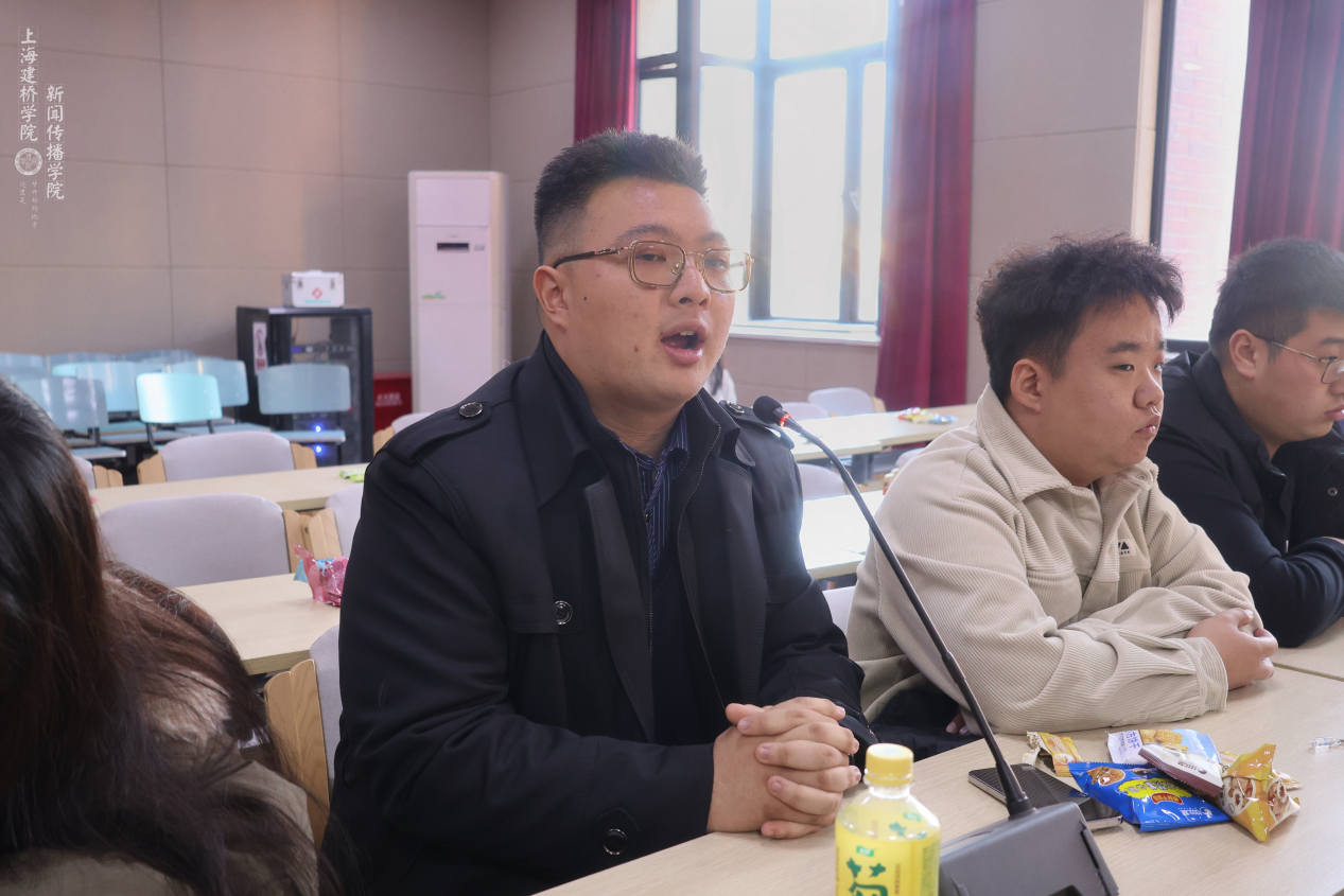 新闻学B23-1严俊杰同学给予回应:新闻系《高级新闻写作》课程周三晚邀请SMG总监、首席编导等行业老师开展面对面交流作为学生,他对这一交流渠道十分认可——不仅能近距离接触行业前沿动态,还能收获专业创作思路的启发。除此以外,他也建议未来能增加技术性老师的邀请,以获得实操技能的直接指导。