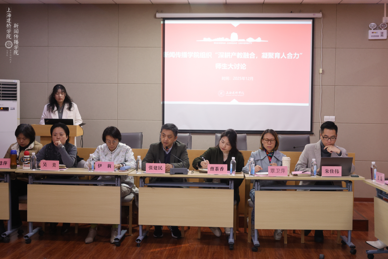 为凝聚师生共识,提升师生对融合育人的认知。2025年12月3日,新闻传播学院于学院楼308顺利开展了“深耕产教融合,凝聚育人合力”师生大讨论活动,本次活动由新闻传播学院辅导员谢钰莹老师主持,参会人员有新闻传播学院党委书记伊莉老师、新闻传播学院副院长张建民副教授、各系主任、专业导师、教师代表、全体辅导员老师、学生代表以及特别邀请嘉宾:学生处高祺老师、教务处曹吉老师。