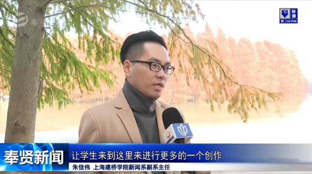 近日,新闻传播学院新闻系将专业实践课堂“搬”进上海海湾国家森林公园,在红叶层叠的自然场景中开展了一堂生动的融媒体实践教学。本次活动以“海湾秋叶正红时”为主题,由新闻系副系主任朱佳伟与专业教师李刚、喻晓岚、梁晓琳,联合奉贤区融媒体中心三位资深记者共同指导,以“双师协同”模式带领学生完成融合新闻采制全流程实战。