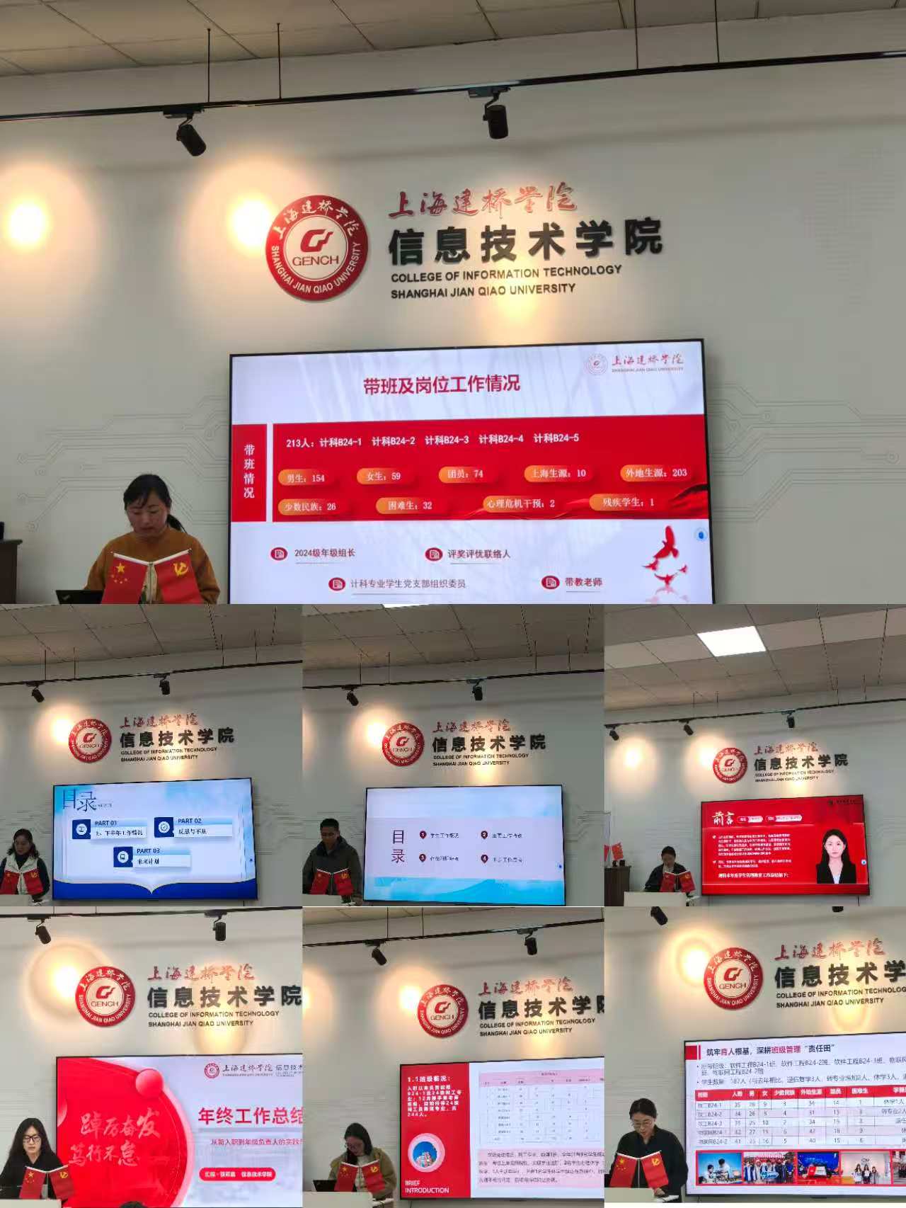 为全面总结2025年学生工作成效,明确2026年工作方向,进一步提升辅导员队伍专业化、职业化建设水平,12月19日,信息技术学院在党建服务中心111召开辅导员年终述职汇报交流会。学院党委书记杜鹃、副书记徐娜及全体辅导员参加会议,会议由徐娜主持。