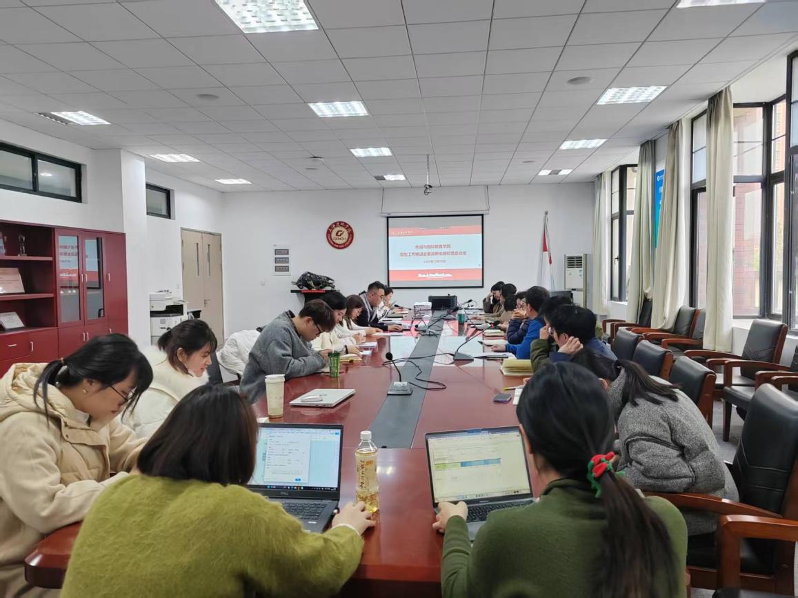 2025年12月29日下午,外语与国际教育学院在229会议室召开招生工作推进会暨准新生探校营启动会。学院党政领导班子成员、系主任及各招生工作组代表出席会议,会议由学院党委副书记徐伟主持。