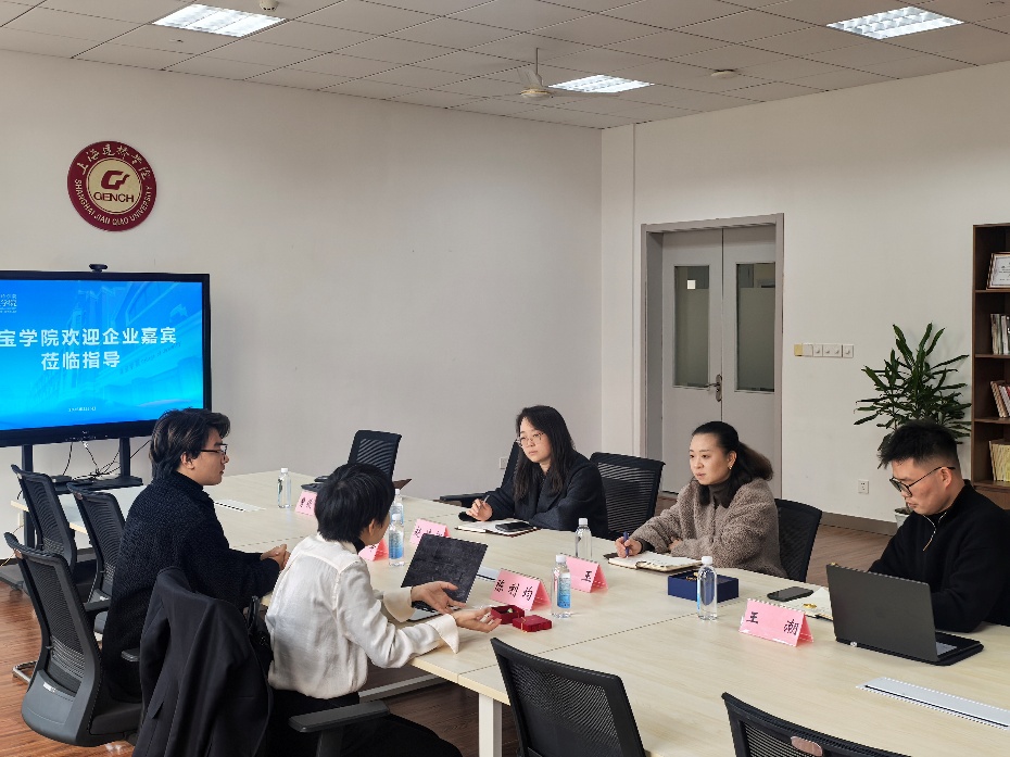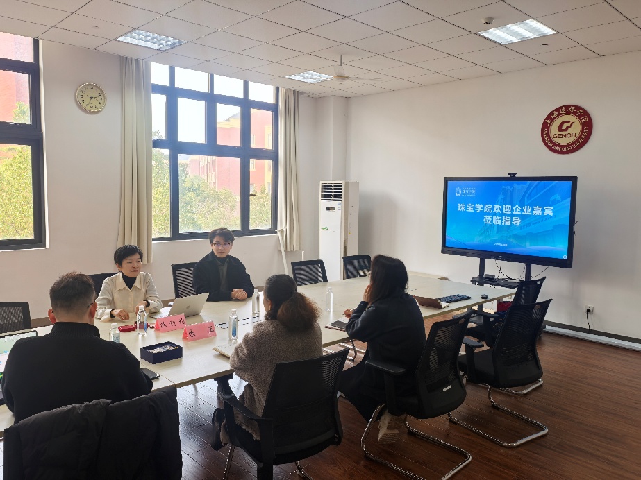2026年1月6日上海东浩国际商务有限公司代表来访珠宝学院,珠宝学院朱玉院长、教师赵靖娜、王潮等参与会谈。双方就中国文化出海、非遗技艺与首饰泛衍生产品的生产及市场推广等方面进行初步合作洽谈。