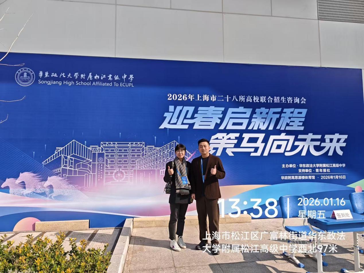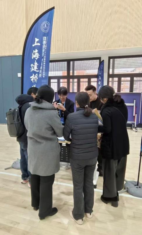 2026年1月16日,上海建桥学院艺术设计学院赴华东政法大学附属松江高级中学(以下简称“华政附高”),参加其举办的“2026届春季高考招生志愿填报咨询活动”。作为本次活动中唯一获邀的民办高校,我校为该校400余名高三学子及家长带来了精准的升学指导。