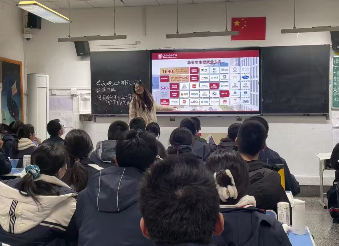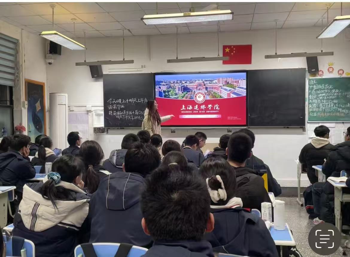 宣讲当天,阳光正好,暖意融融。王艺蒙背着装满宣讲物料的背包,步履从容地走进熟悉的教学楼,走进曾经承载着自己无数梦想的教室。当她独自站上那方熟悉的讲台,指尖触碰黑板的瞬间,心中既有几分忐忑与紧张,更有满满的激动与坚定。台下,学弟学妹们坐得笔直,一双双清澈的眼睛里,满是对大学的好奇与向往,也藏着对未来的迷茫与期许。“大家好,我是王艺蒙,曾经和你们一样,在这里奋力拼搏,如今,我以上海建桥学院学子的身份,回到母校,想和大家分享我的成长与感悟。”简单的开场白,褪去了拘谨,拉近了距离,也正式拉开了此次宣讲的序幕。