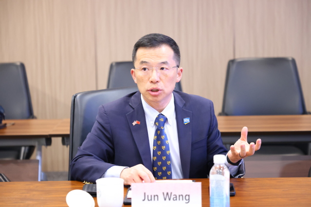 加州大学河滨分校助理教务长Jun Wang对我校的热情接待表示感谢,他简要介绍了加州大学河滨分校的学院及学科设置、地理位置等基本情况,其卓越的学术成就、学生培养价值获得了全美和国际认可。加州大学河滨分校致力于推动全球教育资源共享,期待通过此次访问我校,拓展合作领域,深化合作层次。