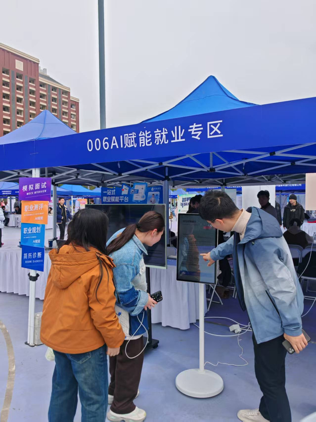 本次招聘会最引人注目的亮点,莫过于特别设置的AI赋能就业专区。这里不仅提供传统的简历诊断、面试辅导、征兵咨询及体制内就业指导等一站式服务,更重磅引入了AI模拟面试系统。