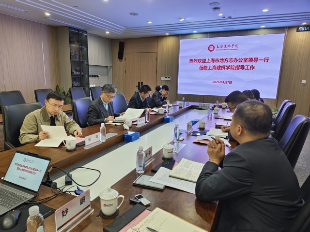 朱校长就我校办学理念、发展历程、办学特色、人才培养及校园文化建设作了全面介绍。姜主任则介绍了市志办的主要职能、定位、重点工作及近年主要成果。学校档案室人员汇报了《上海建桥学院志(1999-2014康桥校区)》编纂出版工作以及新一轮校志前期筹备进展、编撰思路、篇目规划及现阶段面临的问题与诉求。市志工作处处长、专志工作处负责人杨军益给予了细致解答。调研组成员还针对我校新一轮校志编撰的组织架构、体例规范、资料搜集、特色提炼等关键环节,提出了专业性、针对性的指导意见。双方就新校志编撰工作推进、质量把控、办学亮点展示等方面进行了交流探讨。