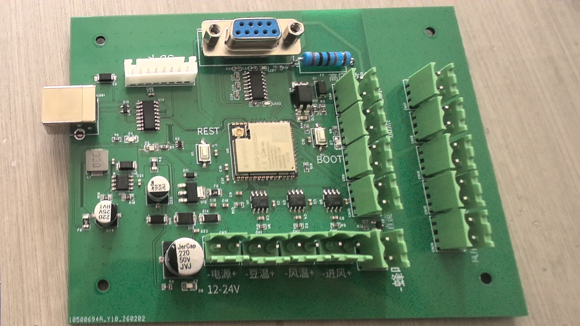 此次研发的电路板是商用咖啡豆烘焙机实现稳定运行的关键部件,负责豆温、风速、风压、火力值、运行参数文件保存等核心功能的控制。项目期间,团队围绕设备实际运行需求,对豆温、风速、风压、火力值、运行参数文件保存等核心功能进行反复调试与优化。从电路设计、程序编写到传感器校准、线路稳定性测试,反复调试优化,将课堂知识转化为实际产品,不断攻克技术难点,确保控制精度与运行可靠性。