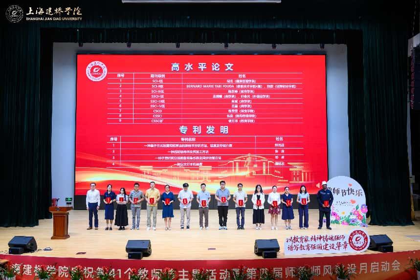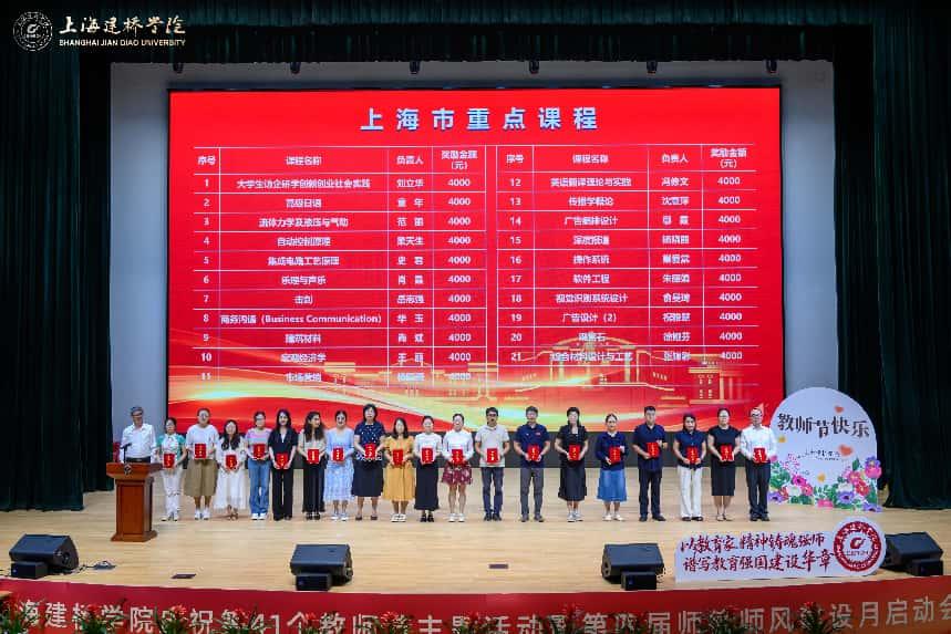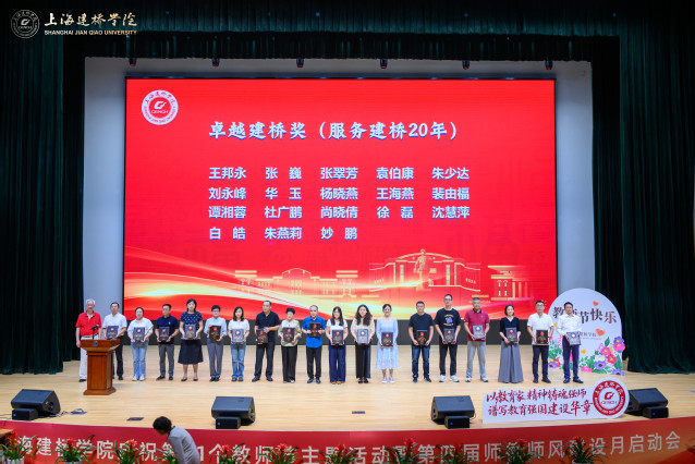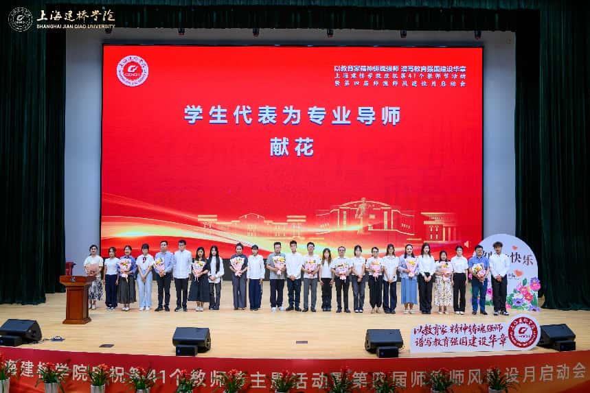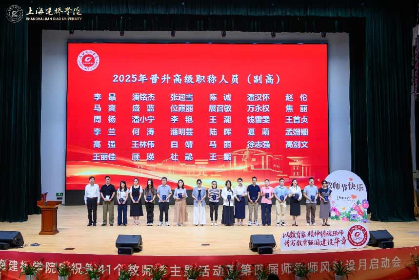 金秋送爽,桃李芬芳。9月11下午,上海建桥学院大礼堂内洋溢着庄重而热烈的气氛,以教育家精神铸魂强师 谱写教育强国建设华章庆祝第41个教师节大会在此隆重举行。珠宝学院全体领导班子和教师代表与其他学院师生齐聚一堂,共同庆祝这个属于教育工作者的光荣节日。