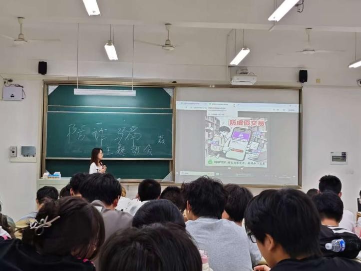 班会上,辅导员以近期社会热点事件为切入点,深入讲解出游安全注意事项。提醒学生,假期出行需选择正规交通工具,坚决抵制“黑车”“超载车”,骑行电动车务必佩戴头盔;外出游玩时尽量结伴而行,避免深夜单独行动,不前往未开发区域或人员稀少场所;同时要保管好个人财物,警惕“低价旅游团”“免费体验”等消费陷阱,做到理性消费、不盲目跟风。针对防诈骗教育,辅导员结合真实案例,揭露了“刷单返利”“冒充客服退款”“网络交友诱导投资”等常见骗局,并总结出“不轻信、不透露、不转账、速报警”的防诈口诀。