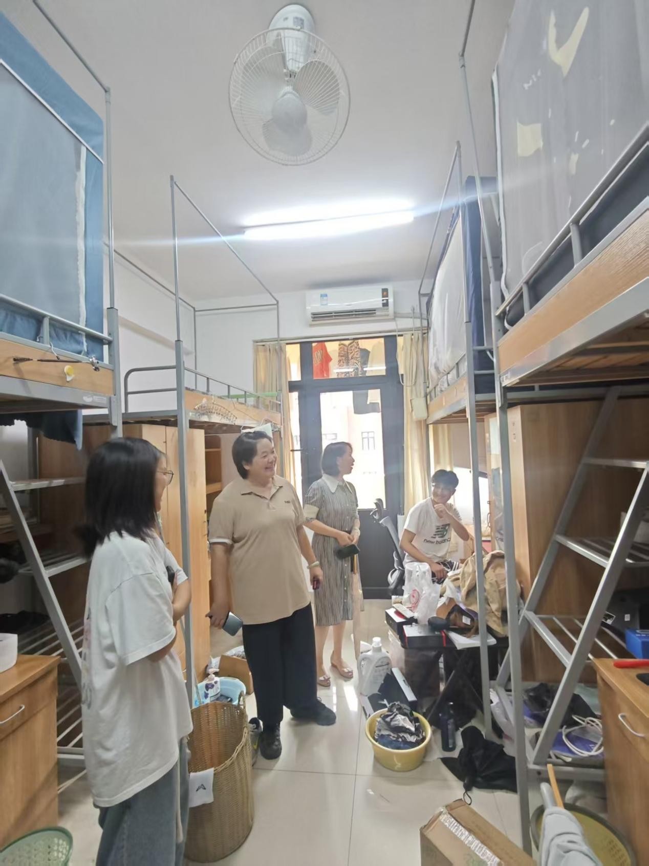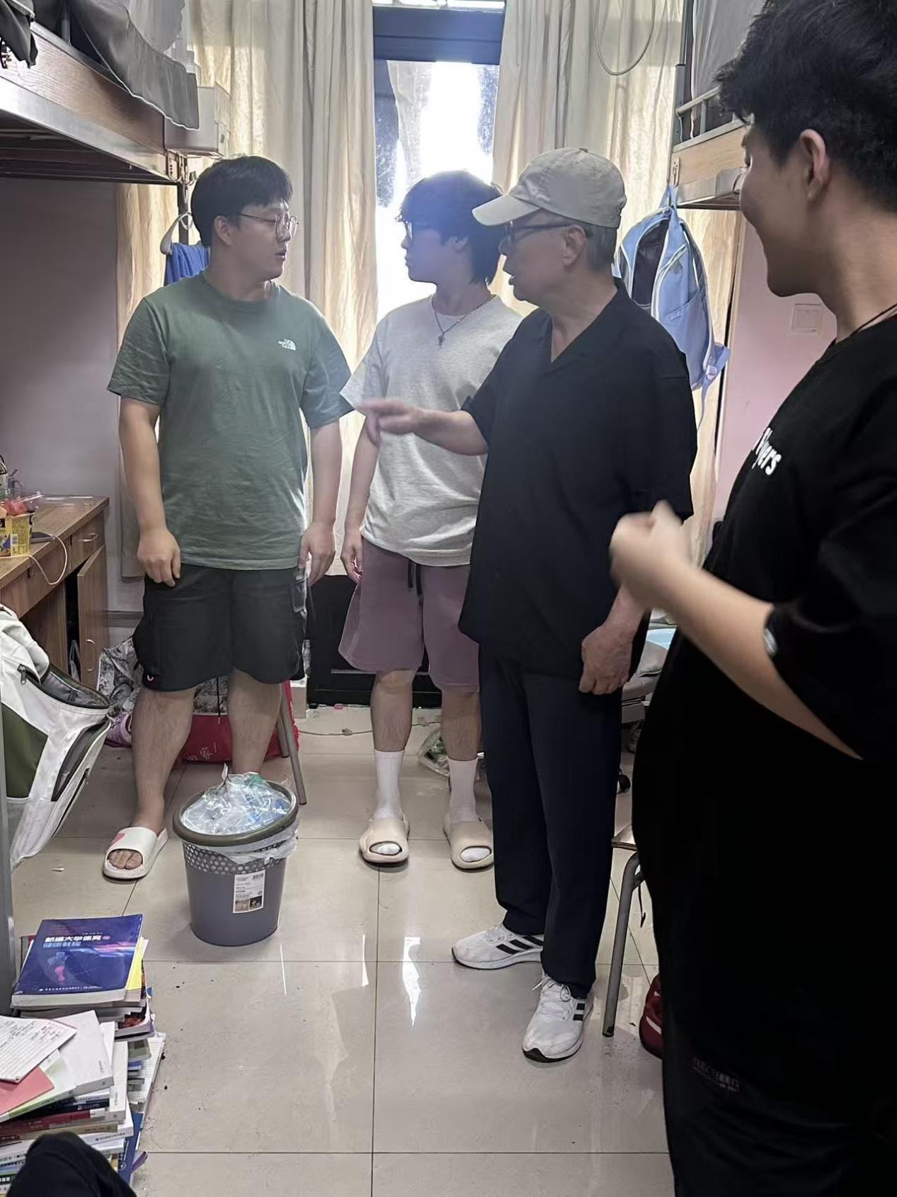 查寝过程中,安全提醒与关怀同步传递。“阳台杂物及时清,人走断电要牢记”,老师们反复叮嘱学生注意防火防盗、防范诈骗,强调留校学生需严格遵守校纪校规,严禁私留外来人员,时刻绷紧 “安全第一”之弦。同时,还贴心提醒学子关注饮食卫生、保持规律作息与健康生活习惯,借主题教育强化学生安全意识。楼道间的叮嘱声渐远,但安全理念已深植学生心中。不少留校学子表示,老师们的细致排查与暖心关怀,让他们在假期感受到了家一般的温暖,为双节假期增添了安心与暖意。