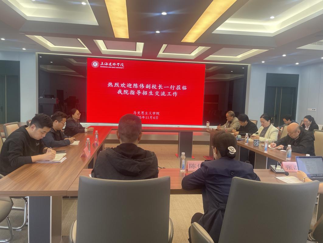 114日上午,上海建桥学院副校长陈伟、校长助理张巍招办主任张磊、招办副主任钟子健、招办专员颜世浩一行莅临马克思主义学院,专题调研并指导学院2026年招生宣传工作。马克思主义学院与创新创业学院党政领导及招生工作骨干教师共同参会。