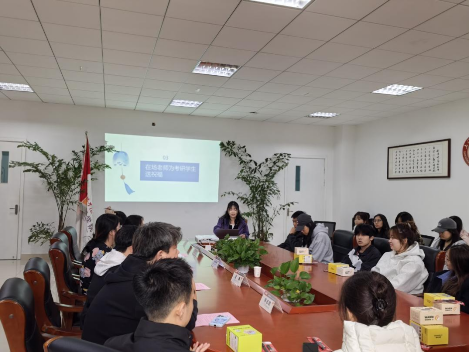 11月11日下午,2026届毕业生考研誓师大会在新闻传播学院楼219召开,本次大会由新闻传播学院学风建设负责人谢钰莹老师主持,出席大会的有新闻传播学院辅导员田红玲、赵鑫、李志鹏、马丹妮、陈宇凡老师。