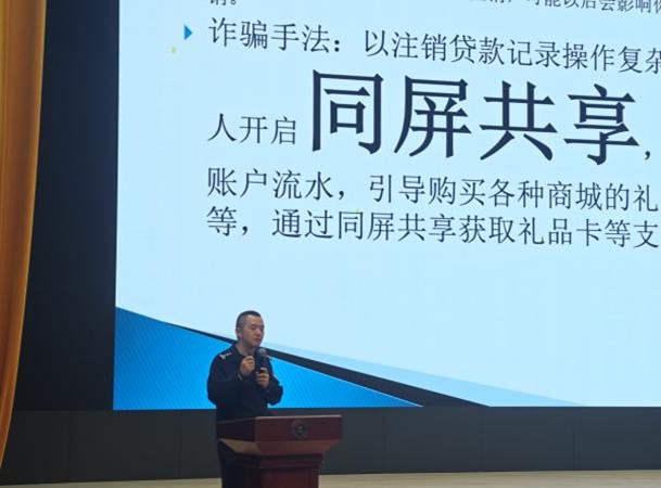 学院特邀临港派出所徐锋警官,开展 “守护财产安全,创建平安校园” 主题宣讲。警官结合高校真实案例,深度剖析网络贷款、刷单返利、冒充客服等高发诈骗类型的作案手法与识别要点。通过互动问答环节,向师生传授实用防骗技巧,重点强调 “不轻信、不透露、不转账” 的 “三不原则”,现场反响热烈,有效提升了师生的反诈 “免疫力”。