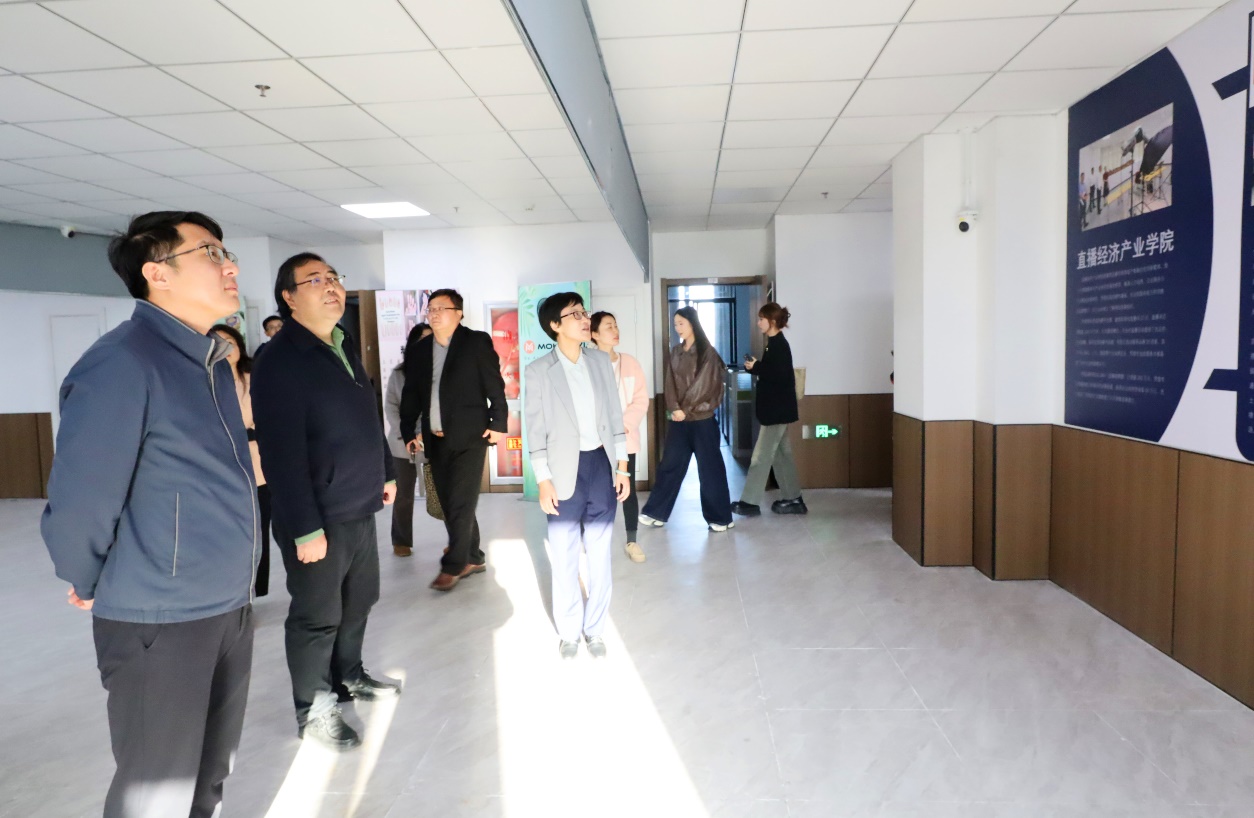 交流会后,与会人员前往参观直播经济产业学院基地。直播经济产业学院长鄢霞陪同参观了教学场地与实训设施,详细介绍了产业学院课程设置逻辑、项目运行及实践性人才培养的落地成效。