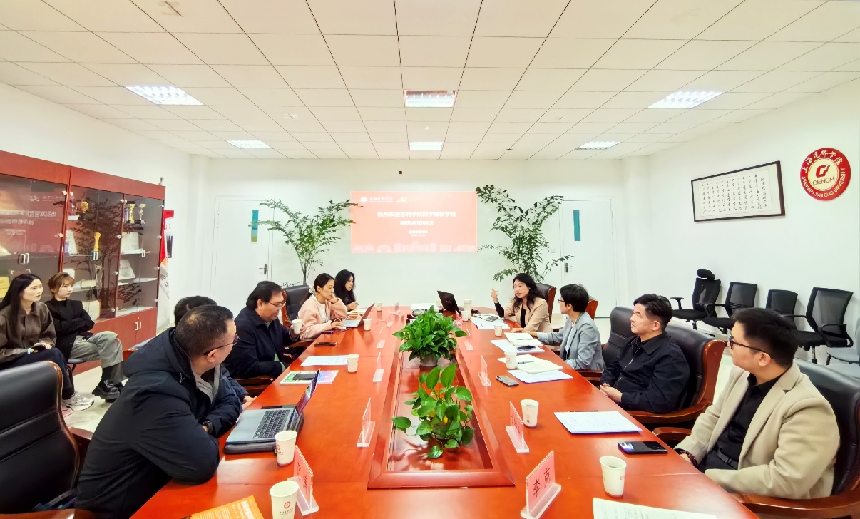 上海建桥学院新闻传播学院院长徐磊教授,首先对吉利学院一行的到来,表示热烈欢迎。随后徐磊院长围绕学院转型发展主线,分享了办学经验与未来创新思路。从课程体系优化、专业培养方案升级,到GEO专业人才培养、低空经济领域校企合作探索,再到打破传统办学壁垒的模块化教学改革,全面展现了学院 “人文 + 传播 + 技术 ” 的复合型人才培养模式。徐磊院长强调,学院始终将产教融合理念贯穿教育教学与学生培养全过程,致力于打造契合区域经济发展需求的一流民办高校学科生态。