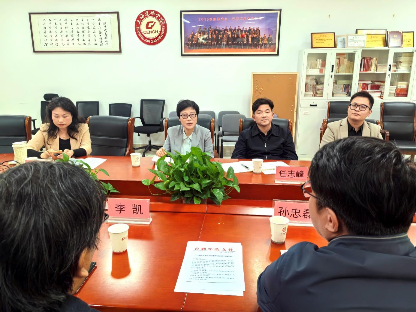 11月14日,吉利学院数字媒体学院院长李凯、副院长孙忠磊一行十余人到访上海建桥学院新闻传播学院,我院院长徐磊、院长助理任志峰、院办主任戈智永、新闻系主任曹茶香、新闻系教师李克等参与接待。双方围绕人才培养模式创新、校企协同育人机制、专业与课程建设、师资队伍发展及智慧教育实践等核心议题进行深入交流。