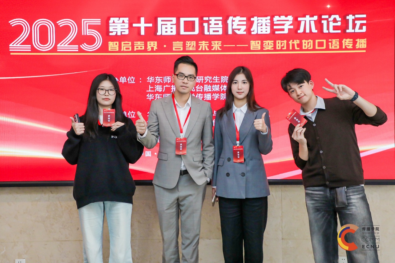 智能技术重构传播逻辑的浪潮下,口语传播如何锚定“人文性”内核?11月15日,由华东师范大学研究生院、上海广播电视台融媒体中心等联合主办的第十届口语传播学术论坛在沪开幕,本届论坛以“智启声界·言塑未来——智变时代的口语传播”为主题,汇聚学界与业界力量,探索智能时代口语传播的创新路径。上海建桥学院新闻系教师朱佳伟携三名学生参加此次论坛,并在“智能技术与口语传播声态重构”分论坛发表了学术演讲。