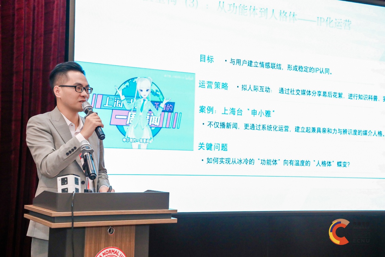 当日下午,七场主题分论坛同步举行。在“智能技术与口语传播声态重构”分论坛上,新闻系教师朱佳伟发表了题为“主流媒体系统性变革中AI新闻主播的角色边界与价值重构”的学术演讲。他指出,当前AI主播已在众多基层电视台的大屏端实现规模化落地,并集中应用于时政新闻领域。这一现象既源于AI技术与规整语态、零容错播出要求的天然契合,也反映了部分广电机构在播出任务与人力资源之间的现实考量。他强调,主流媒体需理性看待AI主播的能力边界。当前AI仍主要局限于标准化的播报场景,而在需要深度情感传递和即时互动的评论类、谈话类节目中,真人主播依然展现出不可替代的优势。他进一步提出,AI主播应突破“高级读稿机”的定位,向公共服务领域拓展。例如以数字人智能体形态嵌入全媒体终端和公共服务领域,承担信息引导与便民服务等职能,构建“内容-服务-治理”的闭环机制,实现从功能体到人格体的价值升华,从而真正融入新型主流媒体的系统性变革进程。