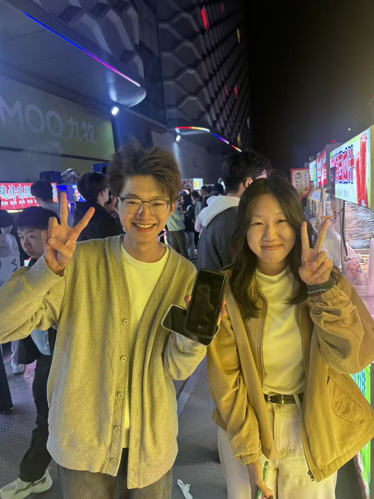 11月3日傍晚,江一帆与曹语萱两位同学在升旗仪式排练结束后,结伴前往校外夜市广场的途中拾得一部手机。考虑到手机内可能存有失主重要信息,且夜市广场人员流动大、失主寻回难度高,两位同学当即决定留在原地等候失主返回。期间,虽有市民建议将手机交予广场管理方或报警处理,但两位同学认为原地等候能最大程度缩短失主寻物时间,故坚持留在拾获地点守候。