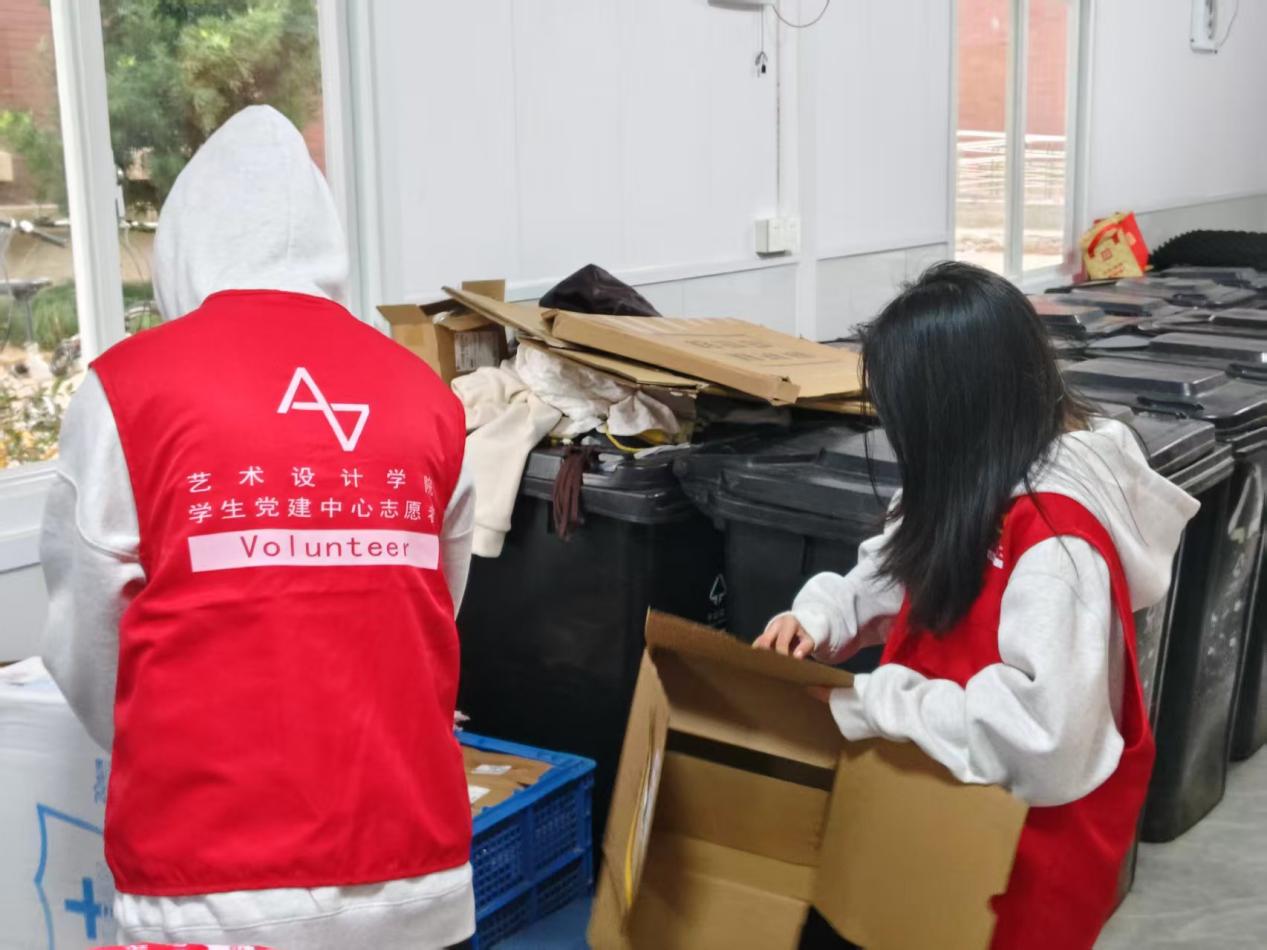 与此同时,南区女寝垃圾站的志愿服务也有序推进。红色服务队队员协助保洁阿姨拆解快递盒、分拣混投垃圾:用剪刀剥离纸箱上的胶带,将其压平叠放以节省空间;对照分类标准,将厨余垃圾、可回收物、有害垃圾精准归类;遇到有同学投放垃圾,还主动讲解分类知识,引导正确投放。“以前总觉得分类麻烦,亲手操作后才知道,规范分类能让资源更好循环。”参与分拣的队员说,看到原本杂乱的垃圾站变得整齐,成就感十足。