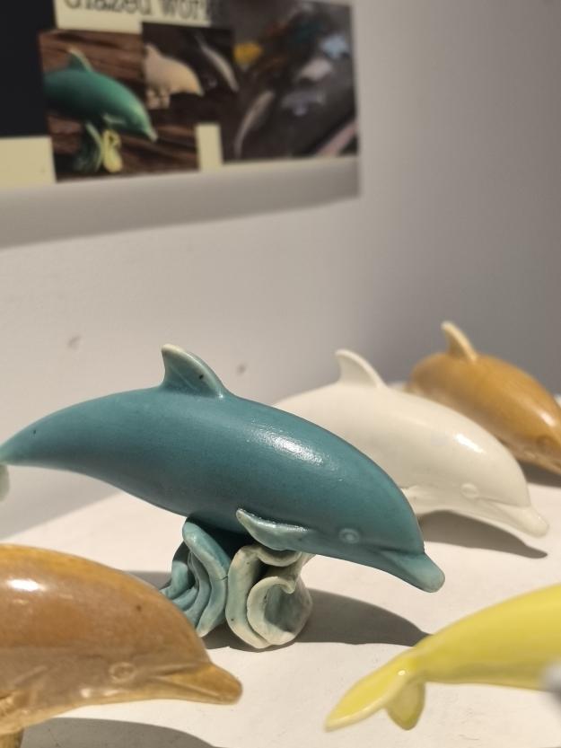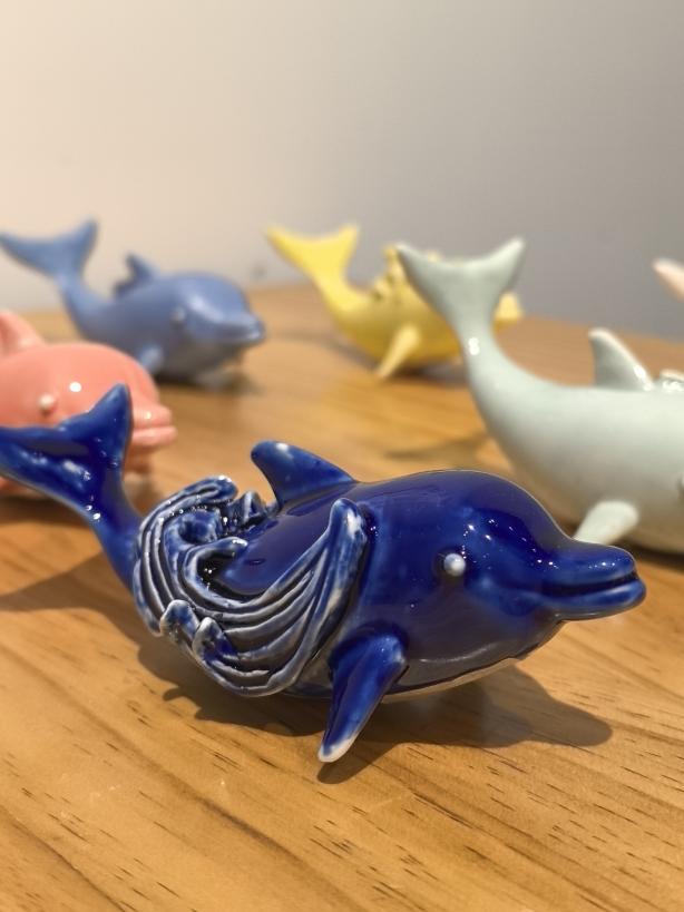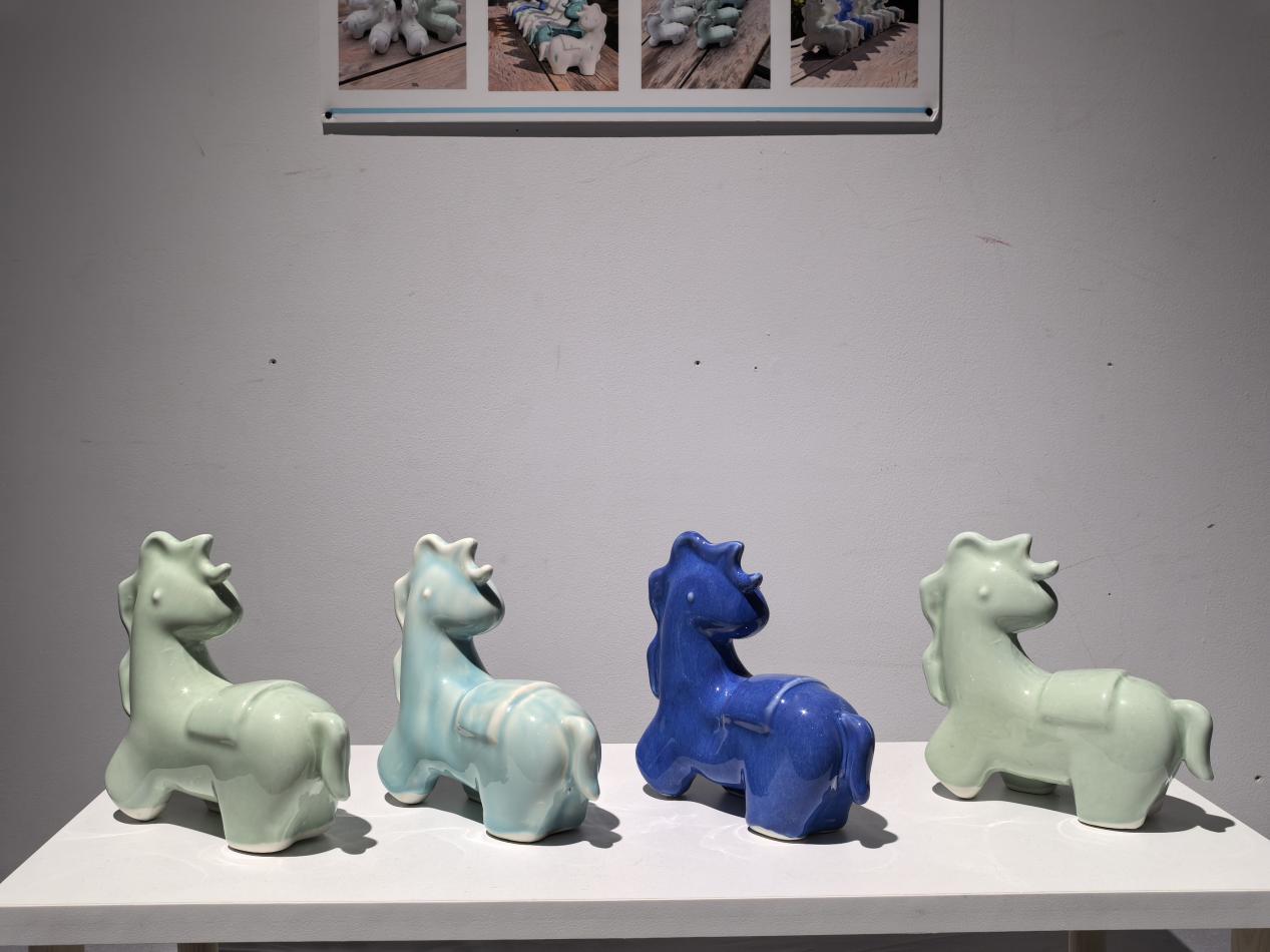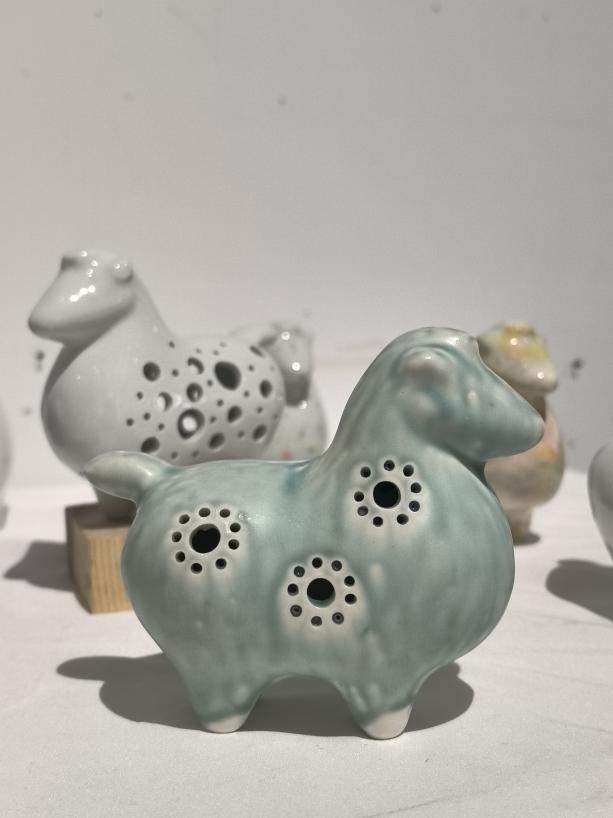 通过课程的系统训练,学生们从创意构想到实物落地,对陶瓷工艺流程有了全面而深入的理解。在作品创作中,同学们设计了企鹅、瓷马、章鱼、海星、贝壳等多元造型,不仅在形态上追求生动性,也在釉色实验中不断突破常规,使作品在窑火中呈现出独特质感。在反复的实践操作中,同学们逐步理解泥浆配比、模具分型、脱模控制等细节的重要性,并在解决开裂、变形、釉面不均等问题的过程中提升了动手能力与工艺判断力。课程也帮助学生培养了耐心、专注与精益求精的匠心精神。