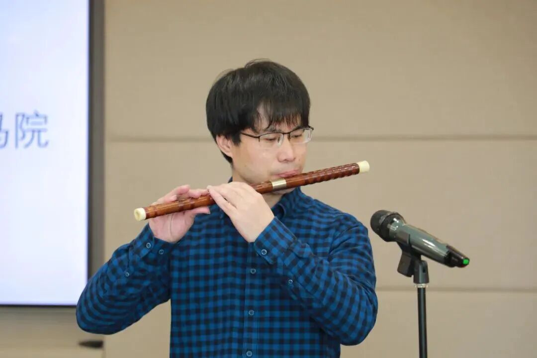 在表演环节,马院朱漪老师演唱了《我的中国心》,传达了香港儿女不灭的中国心情怀;谢丹萍老师演唱了红色歌曲《映山红》和民歌《白头吟》,非常专业和优美的歌声赢得热烈掌声;卞浩老师演唱《我的祖国妈妈》,深情述说华夏儿女对祖国母亲的满腔热情与赤子之心,卞老师洪亮歌声和深厚情感激发现场热烈气氛;林伟斌老师演奏了笛子独奏《雁荡秋色》和健康感谢学院项忆欣的中阮演奏《云南回忆(第三乐章)》,给讲座带来了不一样的民族风味,琴声悠扬,沁人心脾,给上海音乐学院的学生们留下深刻影响。最后谢丹萍和卞浩演唱《不忘初心》,表达了为实现中华民族伟大复兴而奋勇拼搏的决心。来自上海音乐学院的学生表示:“这是一台让人印象深刻、情感触动的音乐课,红色旋律里藏着的家国情怀,比文字描述更让人震撼。”