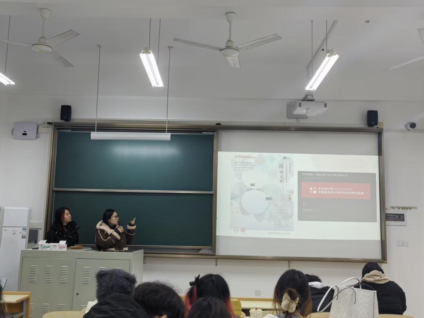 在专业比赛推荐环节,徐春雨老师结合本专业特点,系统介绍了国内外具有影响力的珠宝设计赛事,包括米兰设计周所举办的【专项赛场】“阳明文创”设计大赛和即梦AI所举办的AIGC创作专项大赛等。她从参赛要求、作品主题等方面进行了详细讲解,并引导同学们树立“以赛促学、以赛促练”的学习理念。