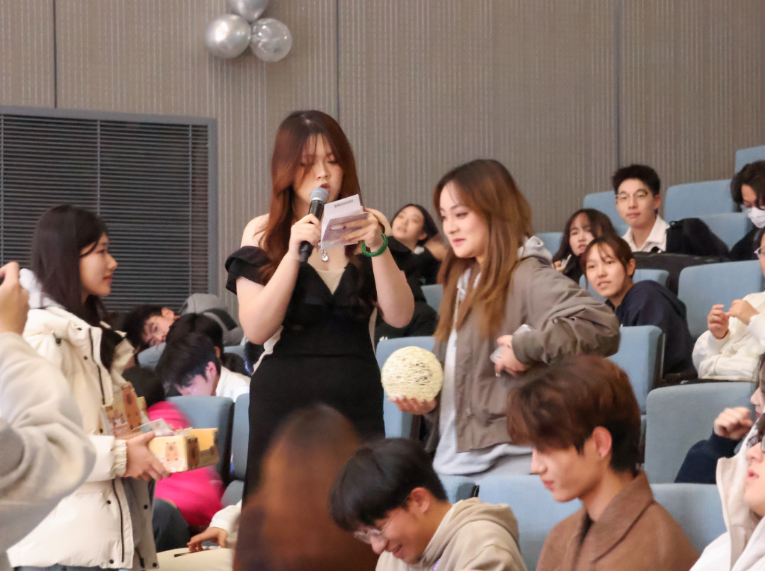 互动环节的击鼓传花与抽奖将现场氛围推向高潮,紧张刺激的节奏与全场欢声笑语交织,鼓声骤停时的欢欣瞬间点燃全场;大屏幕滚动的名单牵动着大家的心,每一次开奖都引来阵阵欢呼。掌声与笑声交织,为本次活动增添了满满的欢乐与惊喜。