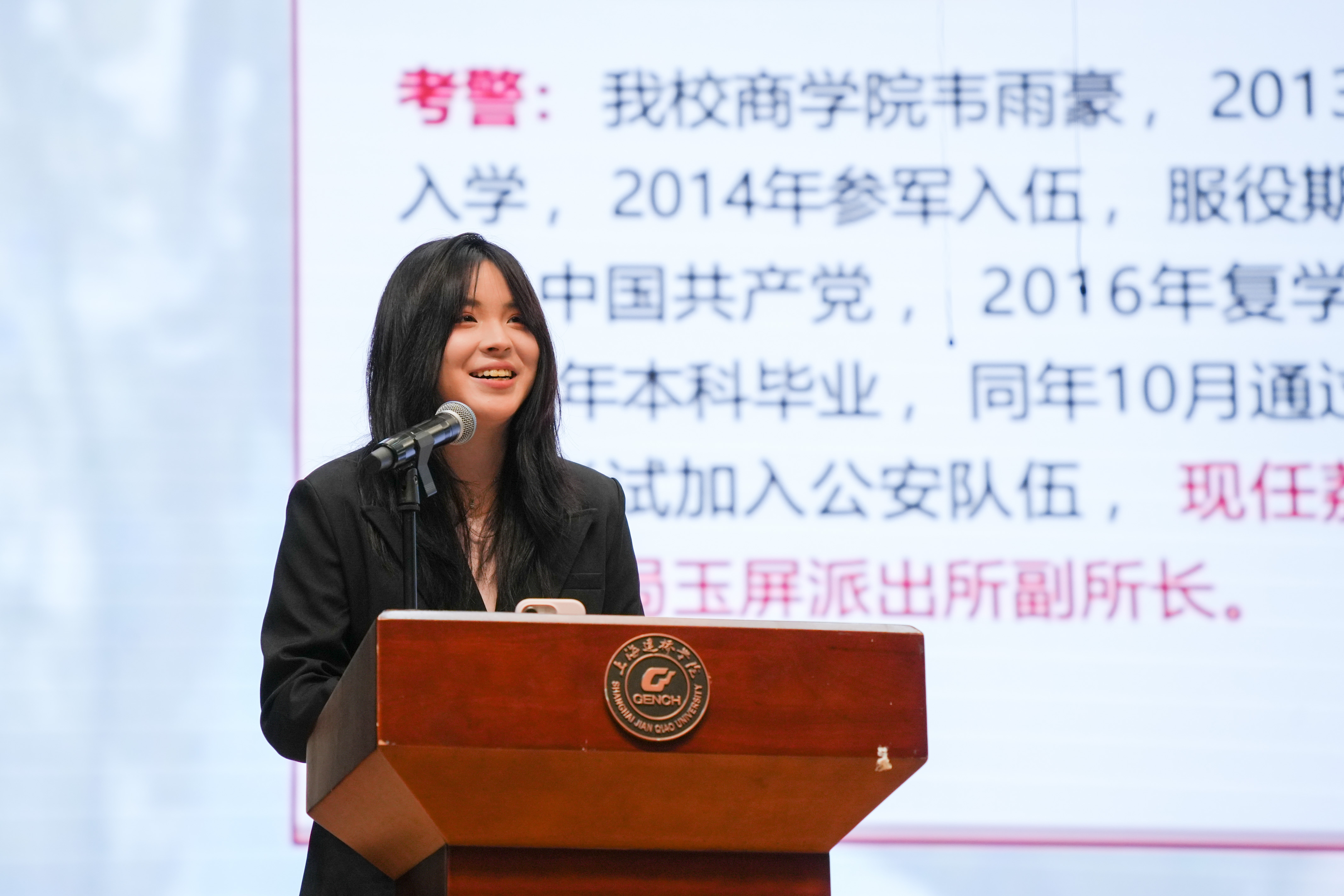 真实的案例最能打动人。新闻传播学院广告学专业马熙媛同学作为志愿者代表,现场演示宣讲,结合个人成长与专业学习,通过温情的语言和扎实的数据,分享了自己真实的大学生活,展现了学校的独特魅力和建桥学子的阳光形象。