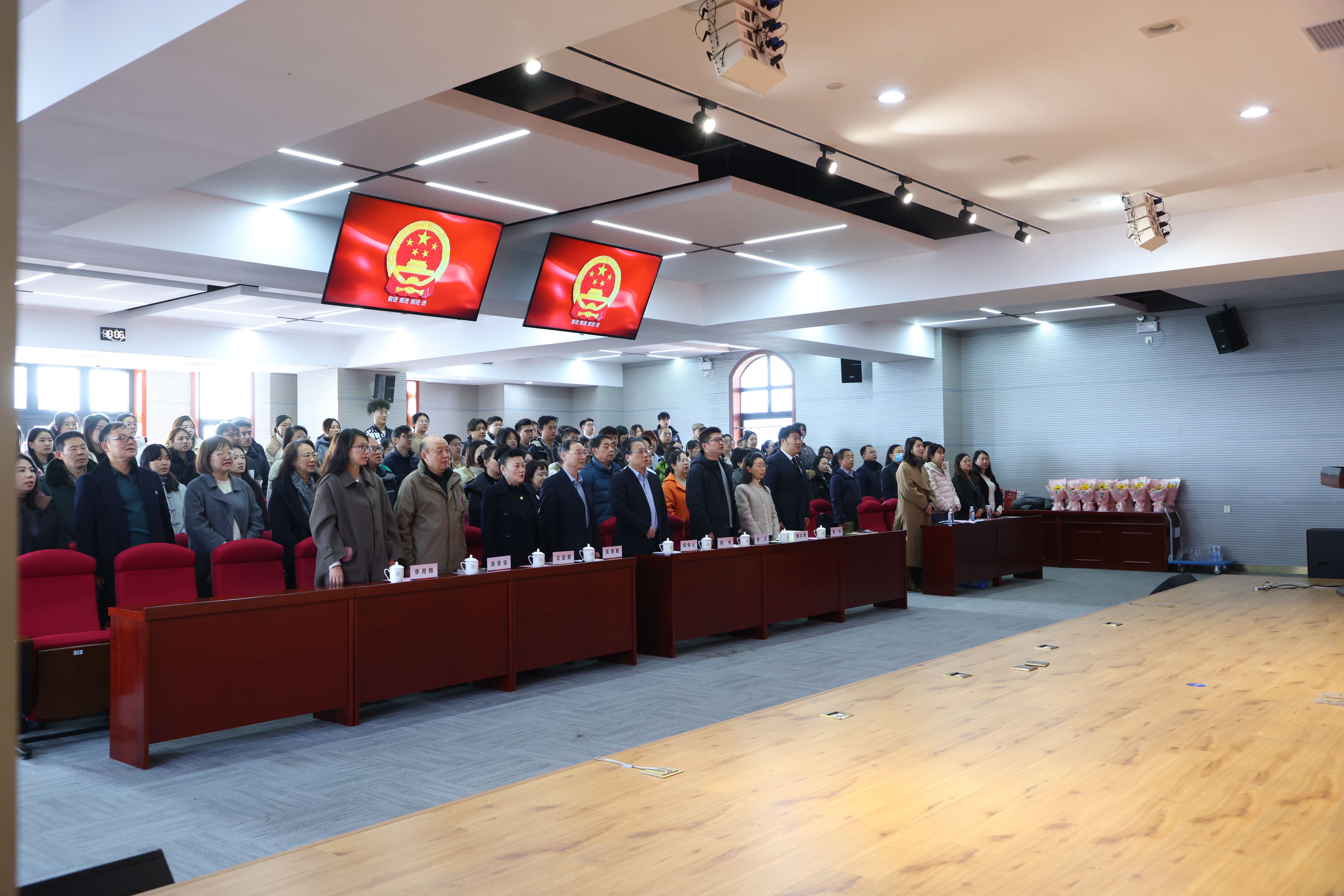 会上进行了银发导师聘任仪式。随后,结对青年教师向导师献花致谢,场面温馨而庄重。